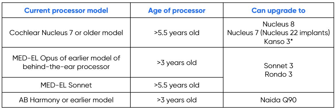 Cochlear Implant Speech Processor Upgrade and Replacement Program